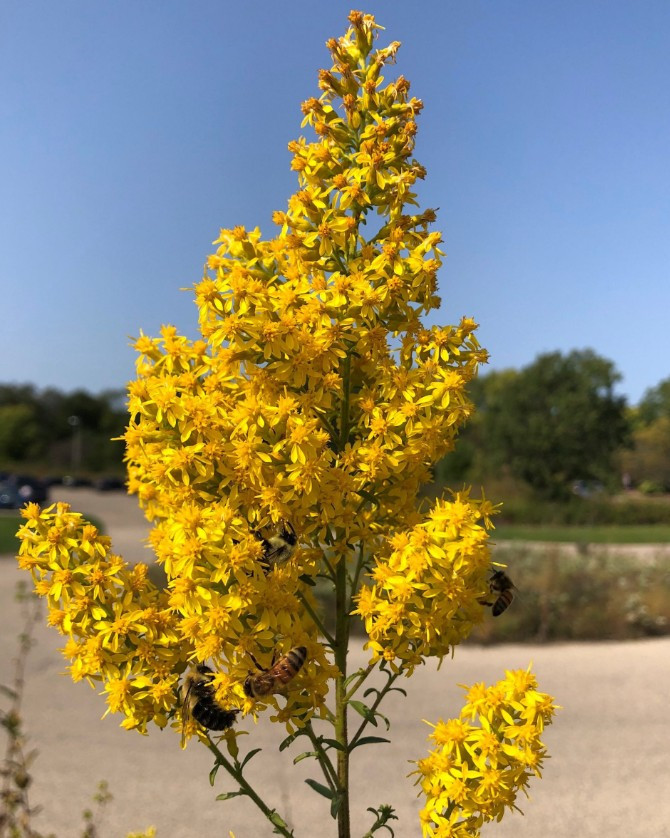 A növény 60–100 cm magasra nő, felálló, erős szárakkal, és keskeny, lándzsás levelekkel rendelkezik. Virágai aprók, aranysárga színűek, tömött, alakú fürtvirágzatban nyílnak, és késő nyártól kora őszig díszítik a kertet. Virágzásuk során számos méh, pillangó és más beporzó rovar látogatja a növényt, így ökológiai szempontból is értékes.