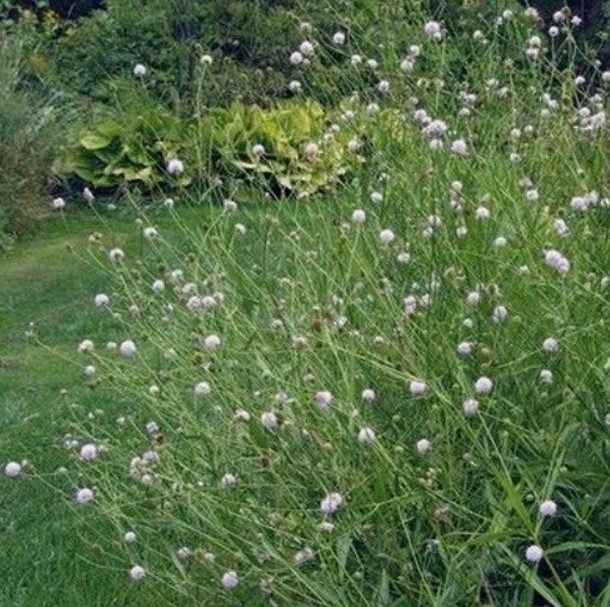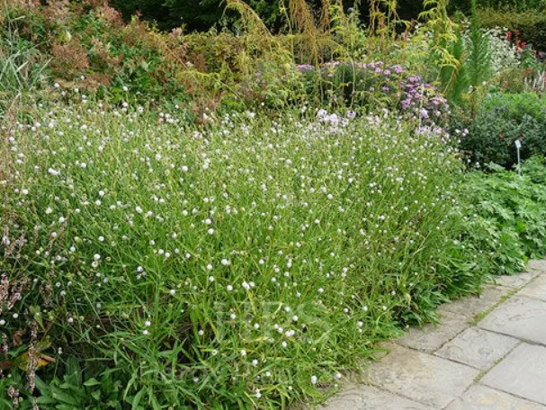 A növény 60–80 cm magasra nő, közepes termetű, bokros habitusú, légies hatású növény. Virágai aprók, gömb alakú virágzatot alkotnak, fehér vagy világos krém árnyalatúak, és kora nyártól nyár végéig nyílnak.