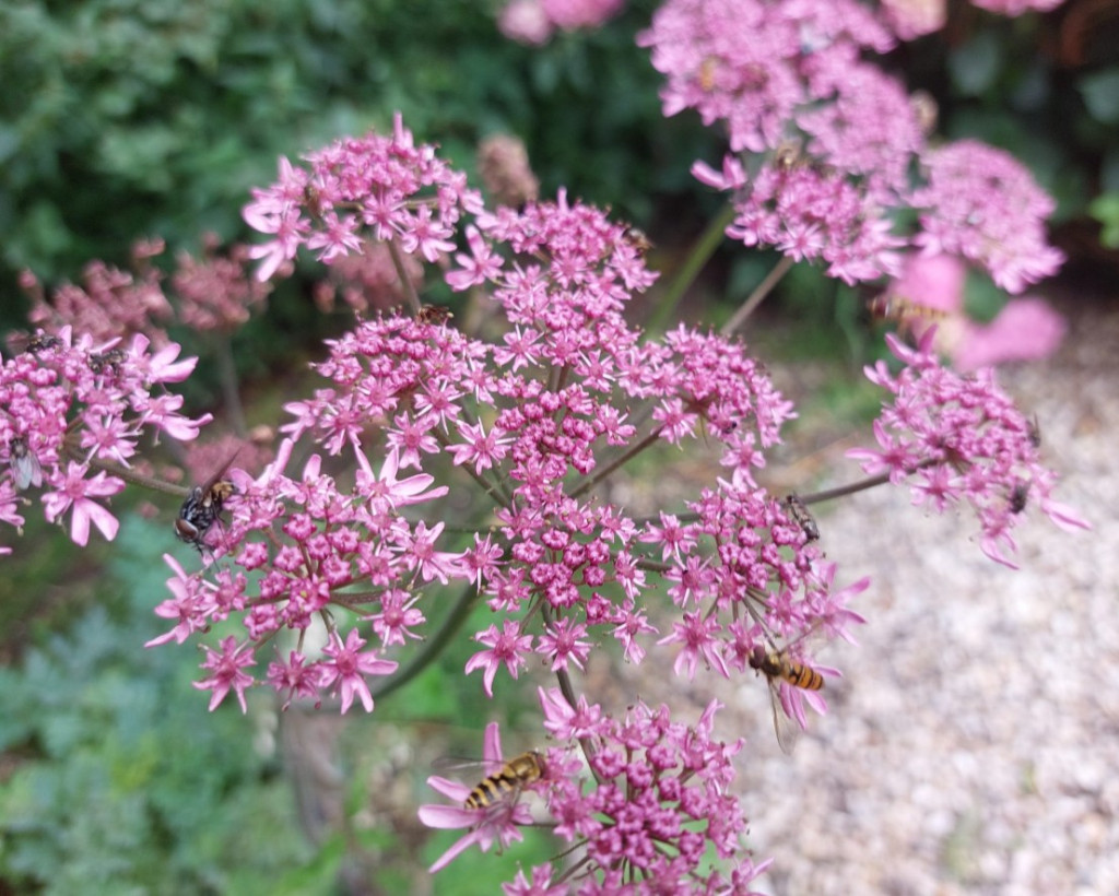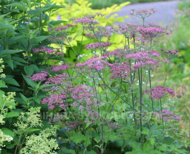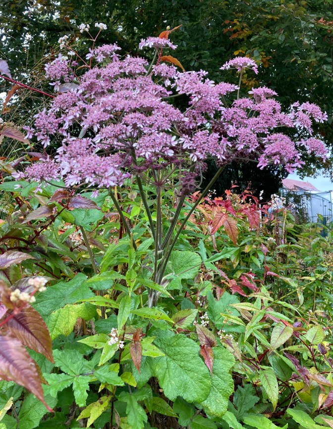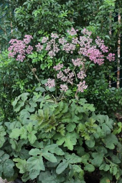 A medvetalp (Heracleum sphondylium), ezen belül a 'Pink Cloud' fajta, a zellerfélék családjába tartozó, Európában és Ázsiában őshonos, impozáns, kétéves vagy rövid életű évelő növény. Ez a fajta a hagyományos, fehér virágú vadfajtól eltérően vonzó, rózsaszínes árnyalatú virágzattal rendelkezik. Fontos figyelmeztetés, hogy a medvetalp nemzetségbe tartozó fajok tejnedve fényérzékenységet okozó anyagokat tartalmaz, amelyek a bőrre kerülve és napfénnyel érintkezve súlyos égési sérülésszerű hólyagosodást okozhatnak, ezért a kezelése során óvatosság és kesztyű viselése javasolt.