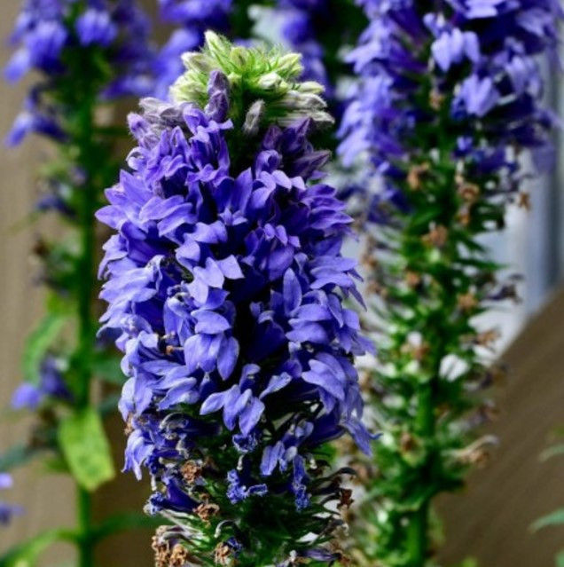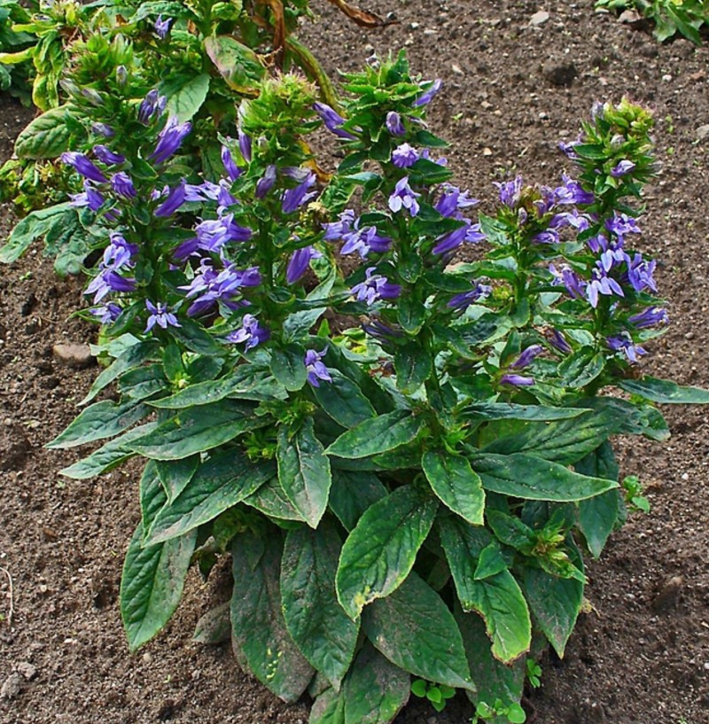 Ez egy felálló szárú, tömör bokrokat alkotó, évelő növény, finoman fűrészes, lándzsás formájú zöld levelekkel. Hosszú ideig nyíló kék virágokkal teli virágfüzérek jelennek meg erős, egyenes szárakon, késő nyártól egészen kora őszig.