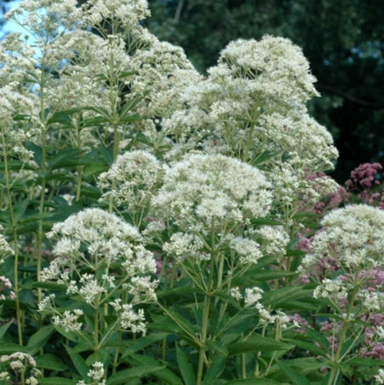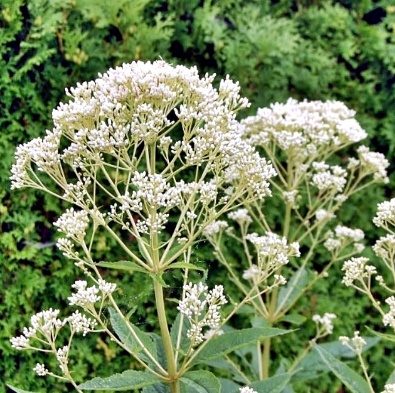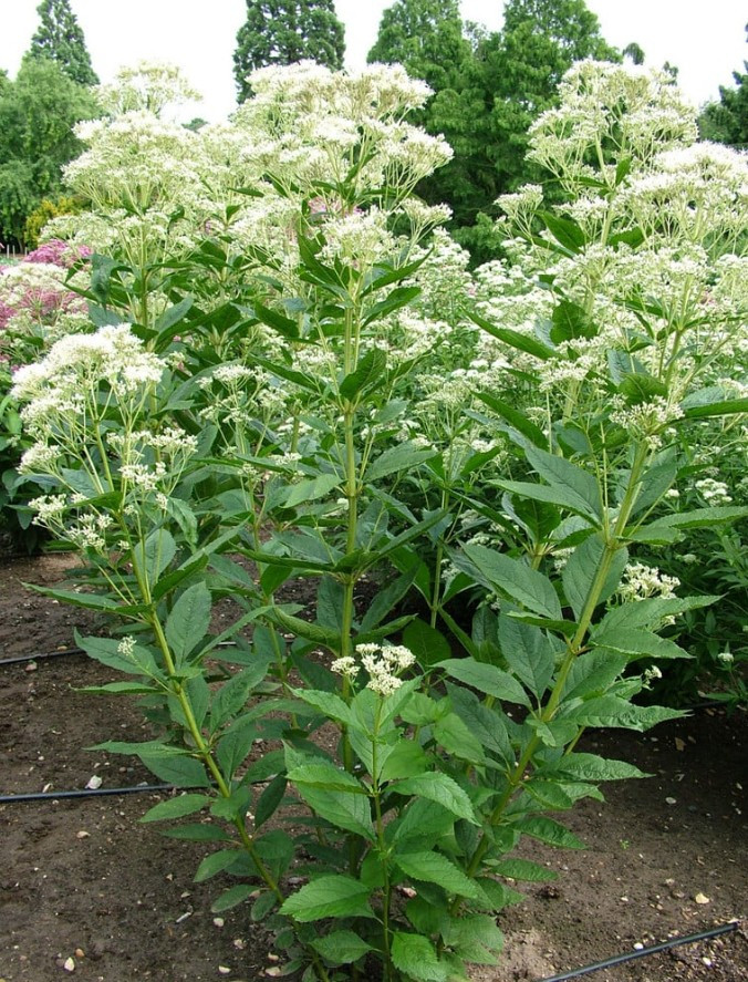 Nyár közepétől őszig (augusztustól szeptemberig) virágzik, apró, krémfehér vagy elefántcsontszínű virágai nagy, sátorozó (ernyőszerű) fürtökben nyílnak a szárak csúcsán, hosszan tartó díszértéket nyújtva. Magassága miatt térelválasztónak, háttérnövénynek vagy a kert fókuszpontjának is kiváló, és fontos növény a vadvirágos, patakparti kertekben is, mivel vonzza a pillangókat, méheket és más beporzókat.