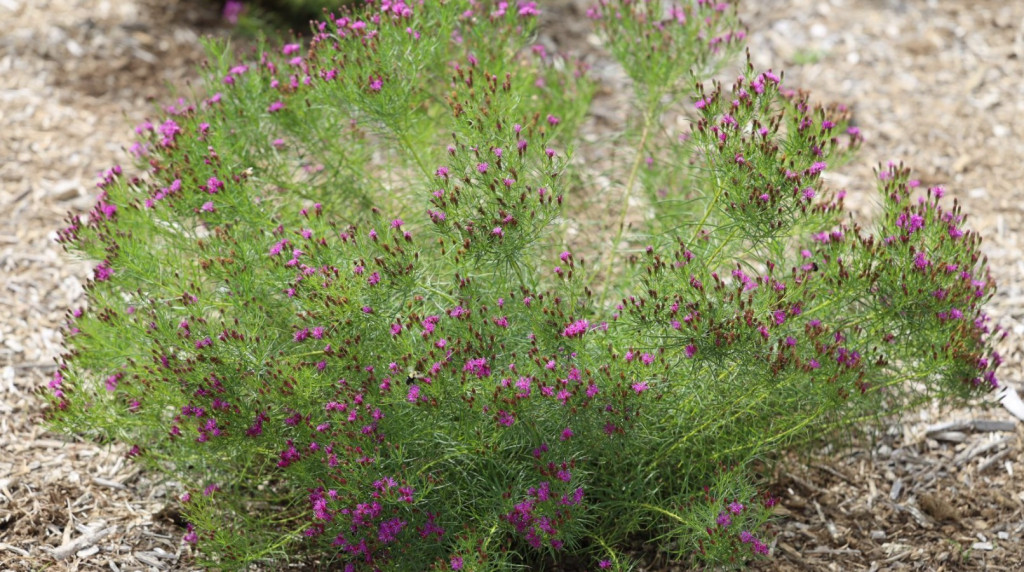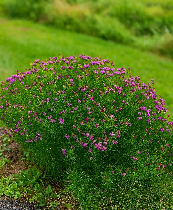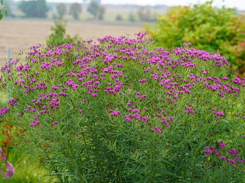 A növény 60–90 cm magasra nő, felálló, erős szárakkal, és finom, keskeny, hosszúkás levelekkel rendelkezik. Levelei egész nyáron dekoratívak. Virágai élénk lila–ibolyaszínűek, laza ernyőben álló, apró fészekvirágzatokban jelennek meg, és nyár végétől kora őszig nyílnak. Virágzásuk vonzza a méheket, pillangókat és más beporzó rovarokat.