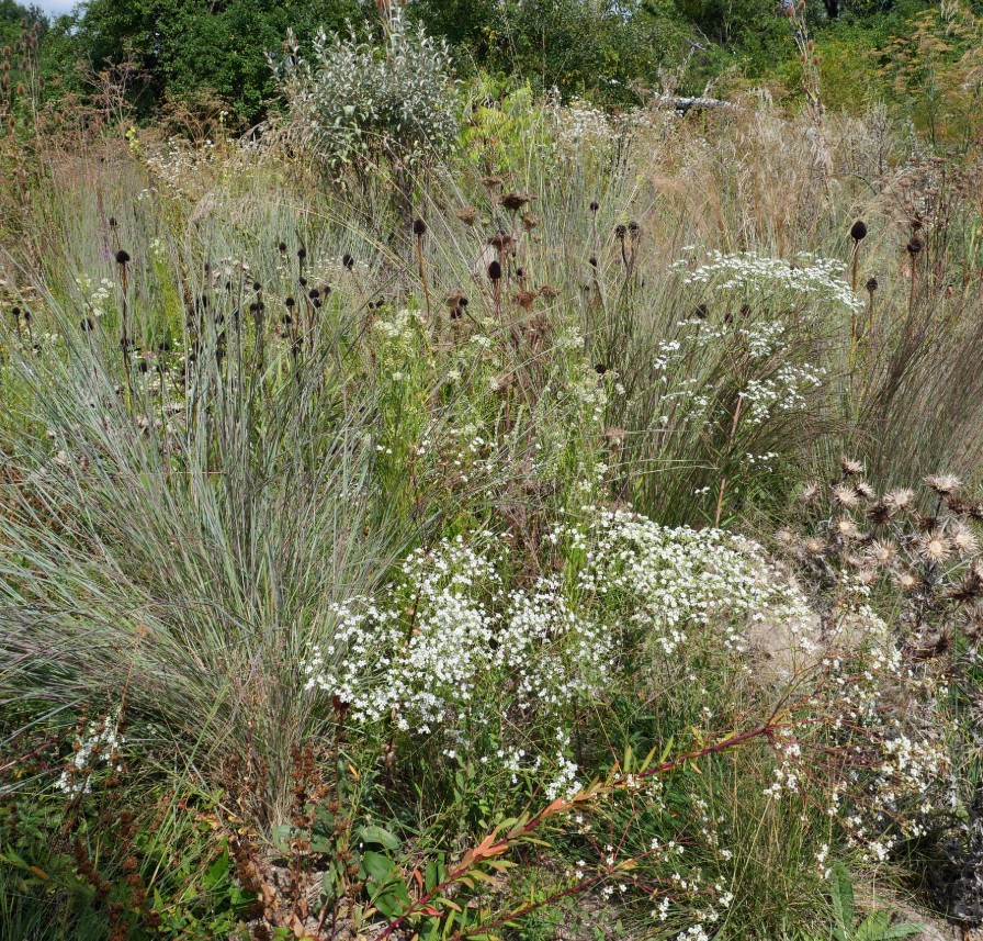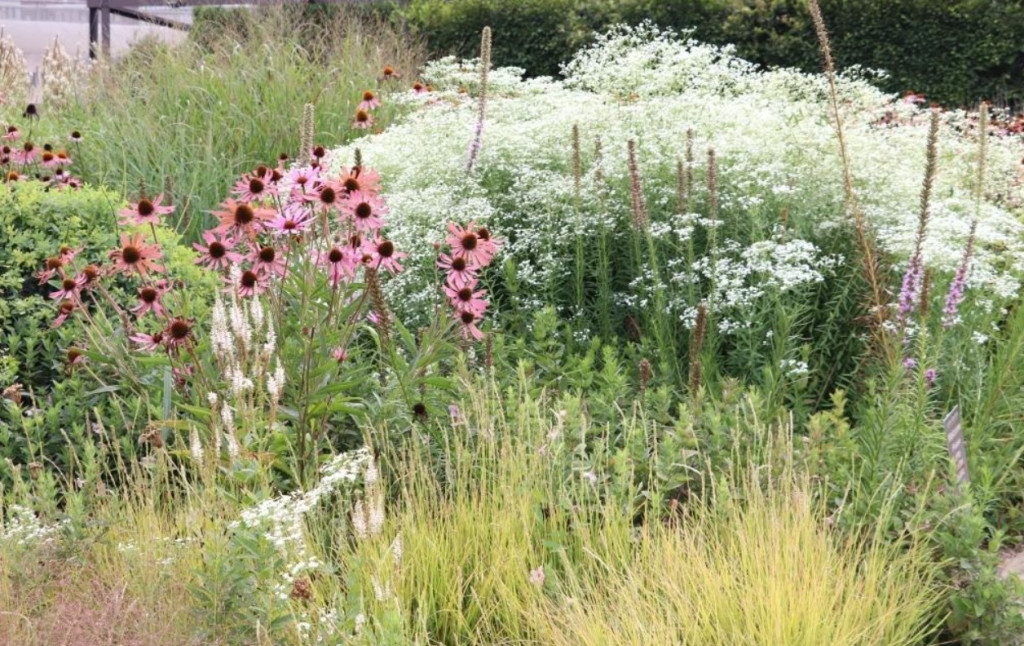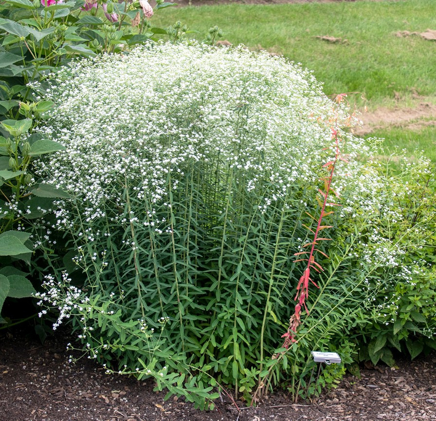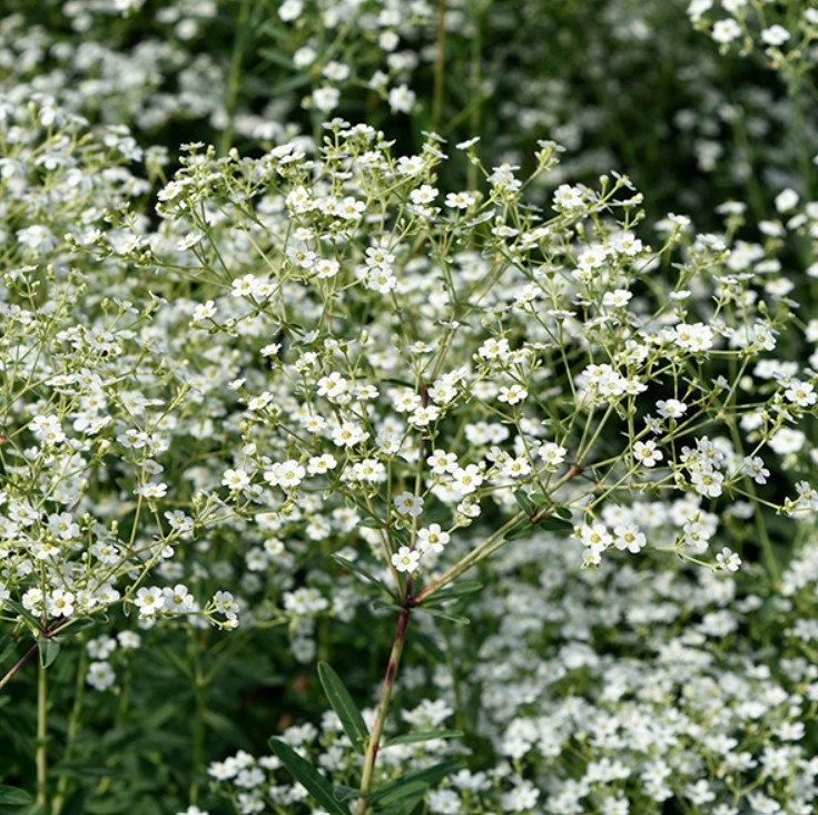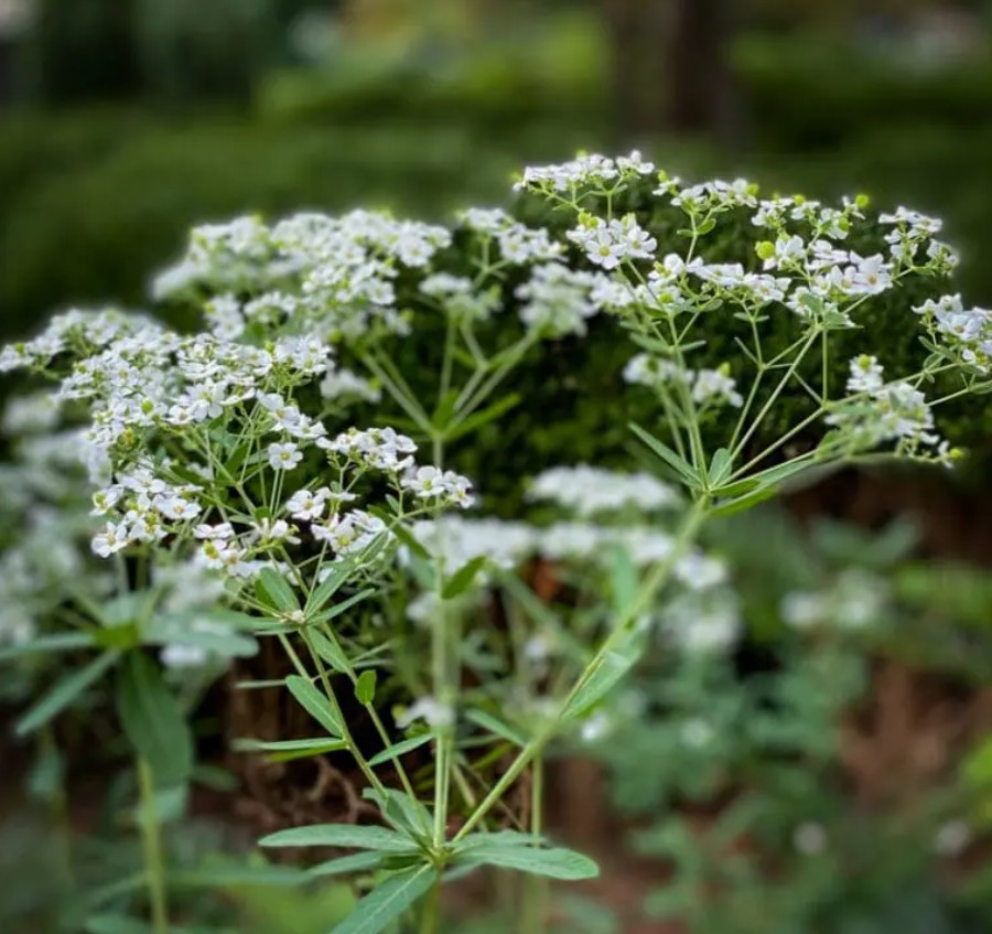 Nyáron, hosszan tartóan virágzik, gyakran egészen a fagyokig, apró, nagy számban nyíló fehér virágokkal, amelyek tömött, ernyőszerű virágzatot alkotva borítják a növényt. Kiválóan alkalmas vadvirágos kertekbe, száraz, napos évelőágyásokba, és a biodiverzitást támogató kertekbe, mivel vonzza a beporzó rovarokat.